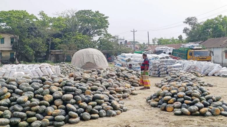 সরেজমিনে গিয়ে দেখা গেছে, পরিবহন সংকটের কারণে কৃষি পণ্যগুলো স্তুপকৃত অবস্থায় আড়তে পড়ে রয়েছে। এর মধ্যে বিশেষ করে মিষ্টি কুমড়াগুলো সময়মতো রাজধানীসহ অন্যান্য এলাকায় বিক্রি করতে না পেরে হতাশা ব্যক্ত করেছেন কৃষক ও আড়ৎদাররা।