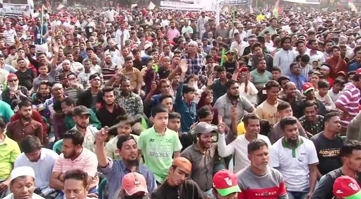 জনসভা শুরুর অনেক আগেই মাঠ কানায় কানায় পূর্ণ হয়ে যায়। মাঠে জায়গা না পেয়ে আশপাশের সড়ক ও অলিগলিতে অবস্থান নেন অসংখ্য নেতাকর্মী ও সাধারণ মানুষ। কেউ কেউ হাতে জাতীয় পতাকা ও দলীয় পতাকা উড়িয়ে অংশ নিচ্ছেন এই পথসভায়।